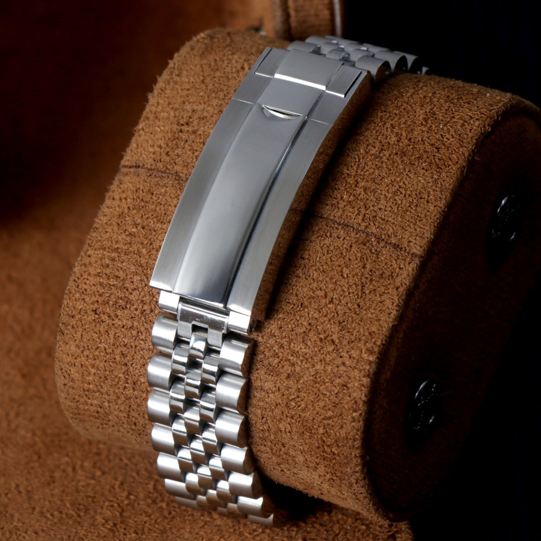 La esfera azul con marcadores luminiscentes garantiza una excelente legibilidad, mientras que el bisel giratorio unidireccional refuerza su identidad profesional. El conjunto se completa con un brazalete de acero inoxidable que aporta solidez y comodidad.