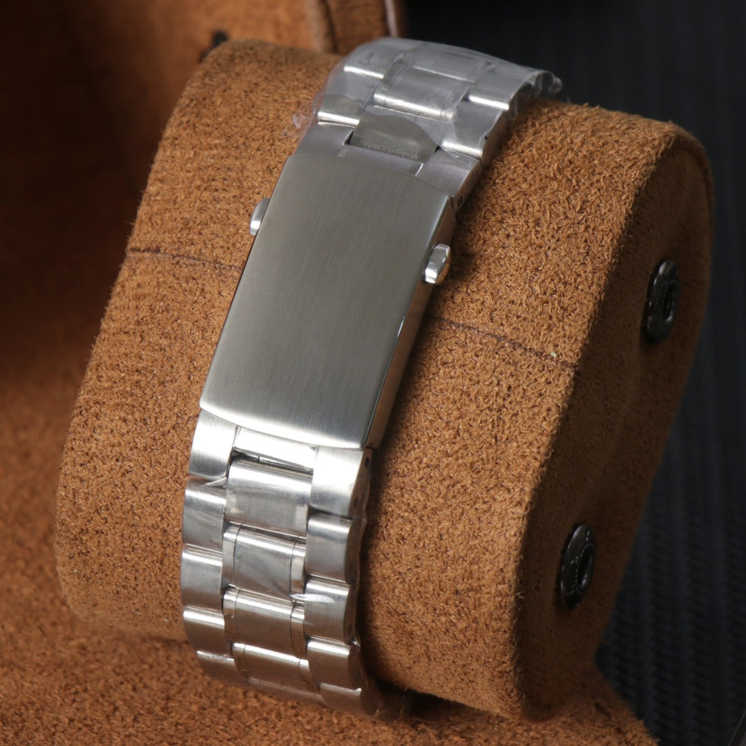 Su esfera blanca de alta legibilidad y el contraste de las subesferas crean un cronógrafo equilibrado, deportivo y con una fuerte inspiración vintage.