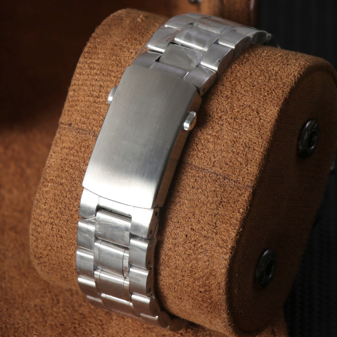 Equipado con movimiento VK63 Mecha-Quartz, que combina la precisión del cuarzo con la respuesta mecánica del cronógrafo.