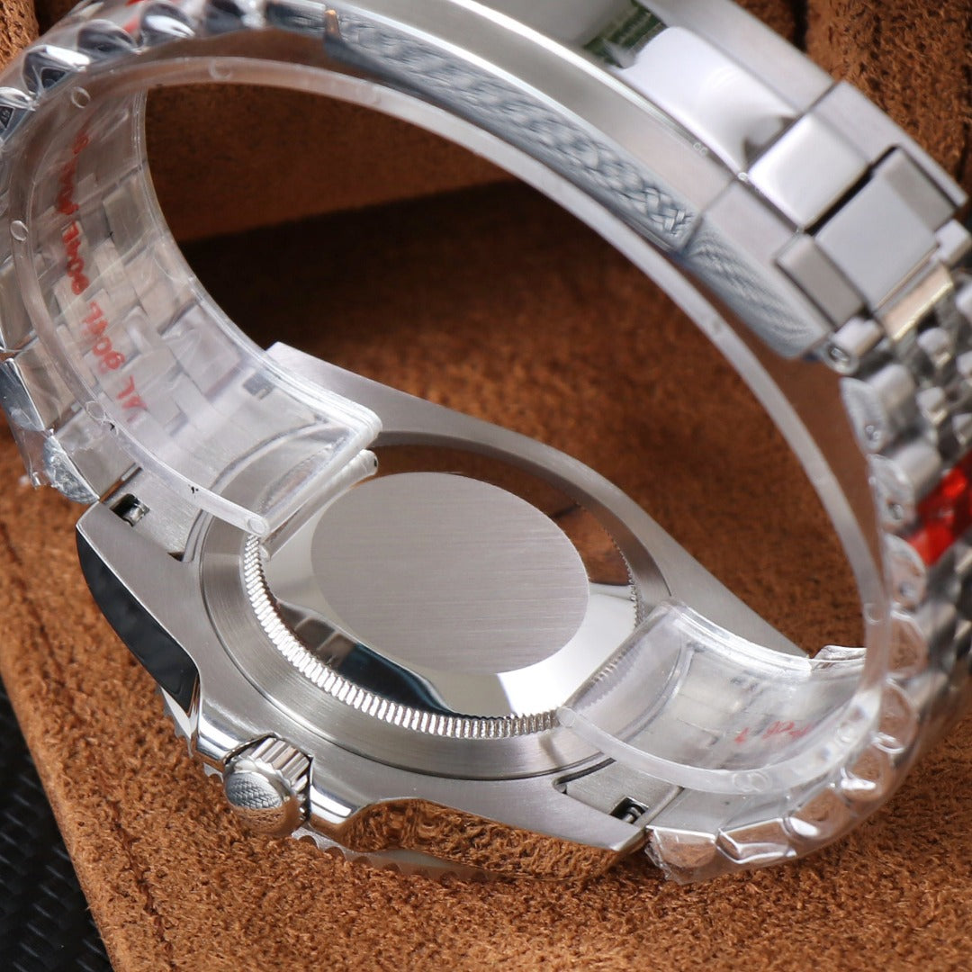 Equipado con movimiento automático NH35. Movimiento mecánico de carga automática con funciones de horas, minutos y segundero central. No dispone de función GMT.
