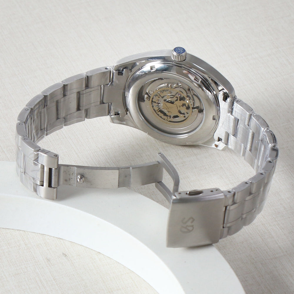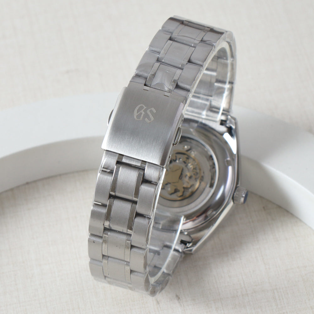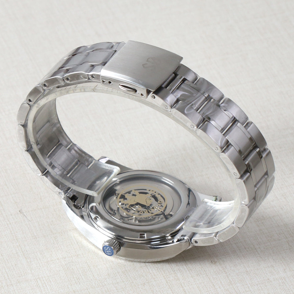 Reloj automático personalizado de estilo Classic Elegant, con caja redonda en acero inoxidable y brazalete metálico.