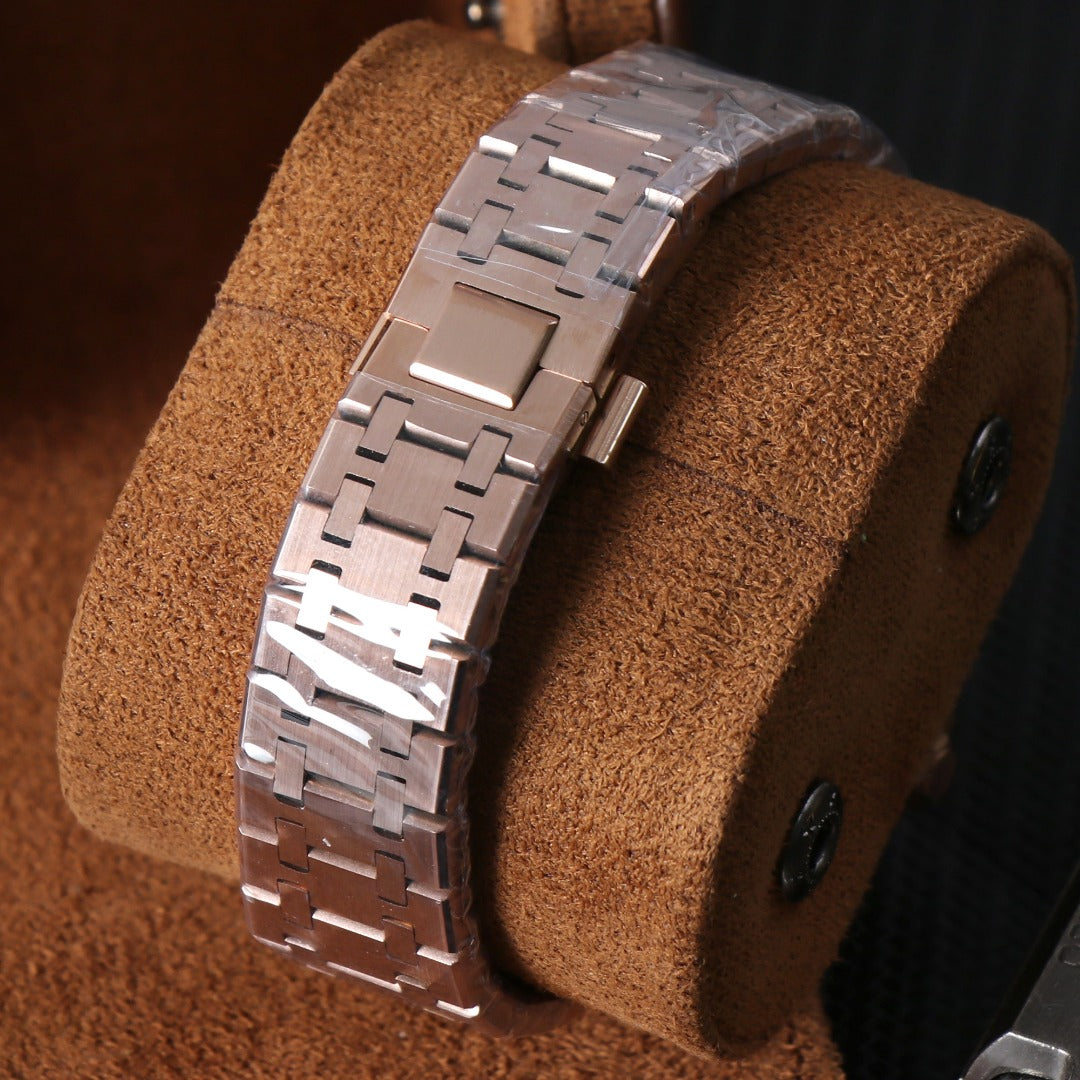Su acabado en oro rosa y su esfera clara aportan un estilo elegante y moderno, ideal para quienes buscan un reloj llamativo pero equilibrado.