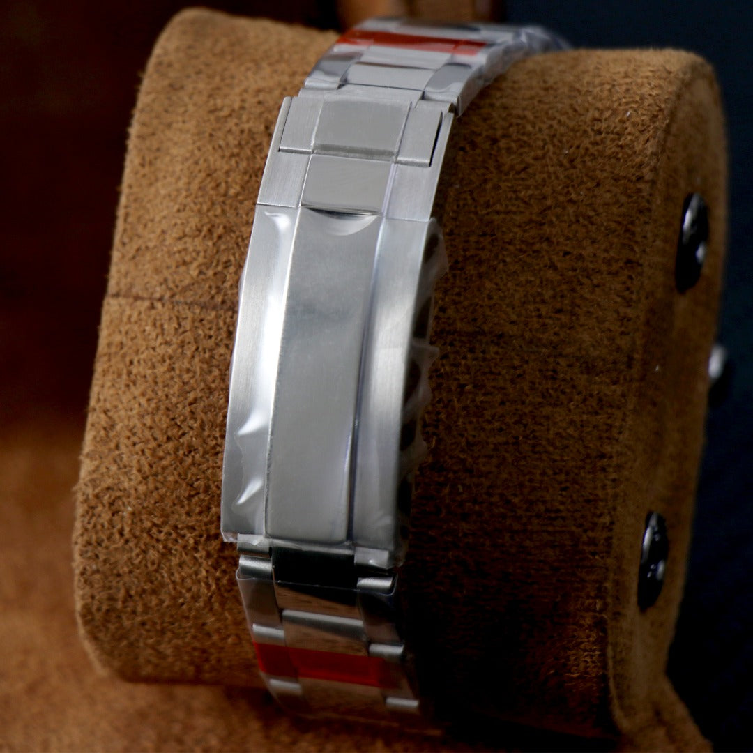 mientras que el bisel taquimétrico refuerza su estética deportiva. El brazalete de acero inoxidable