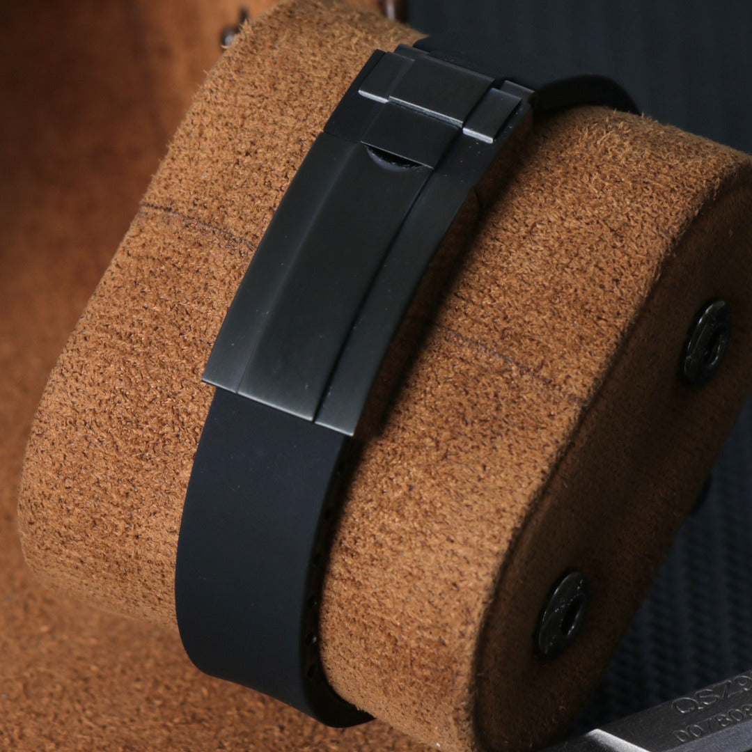 La correa de caucho negro añade comodidad y un enfoque claramente deportivo.